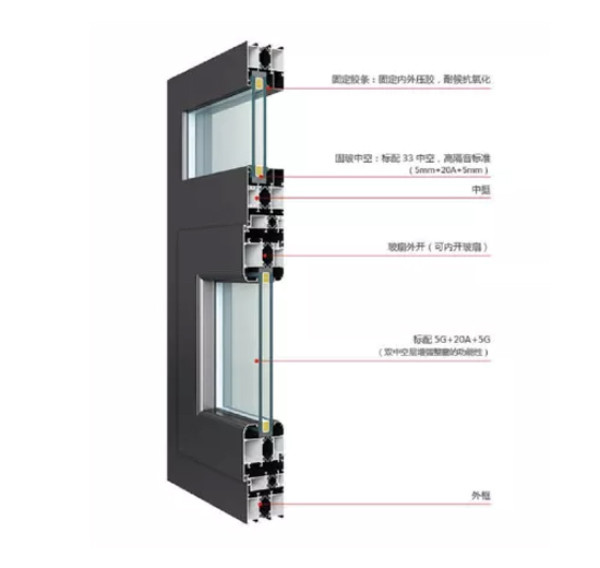 55、65断桥平开窗型材